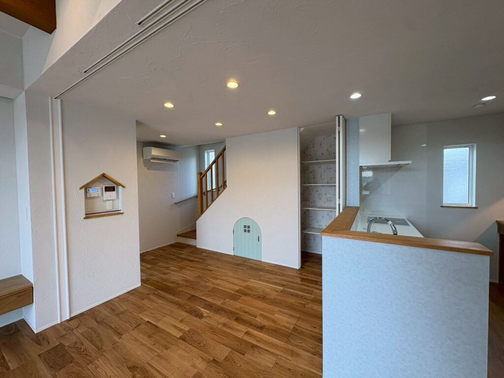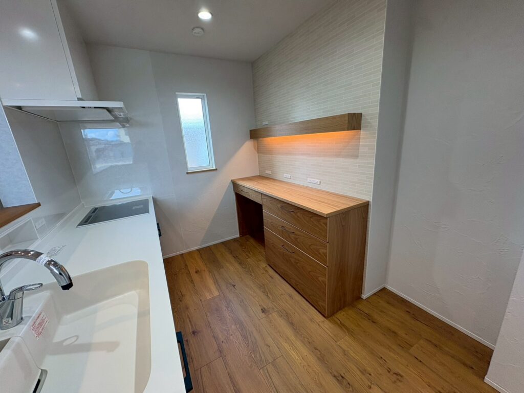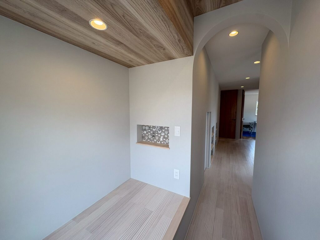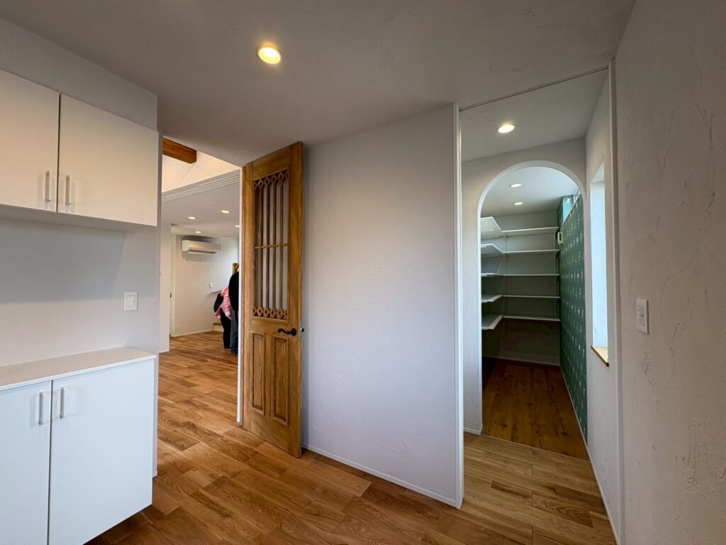 パントリーの入り口のRの下がり壁が良いアクセントになっております。