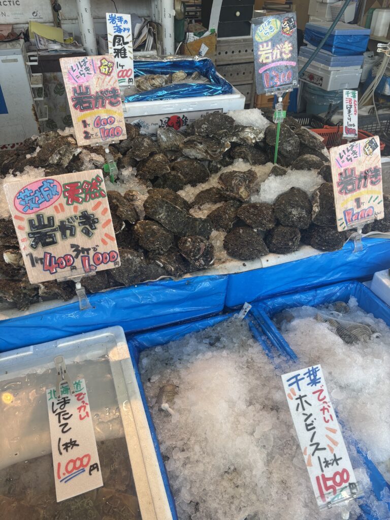 茨城県産のカキがたくさん売ってました!地元だから嬉しい!みんな『いばらぎのカキおいしい』『いばらぎ!』って言ってて、1人1人まわって『あの、いばらきですよ、き』って訂正しようか迷いました。