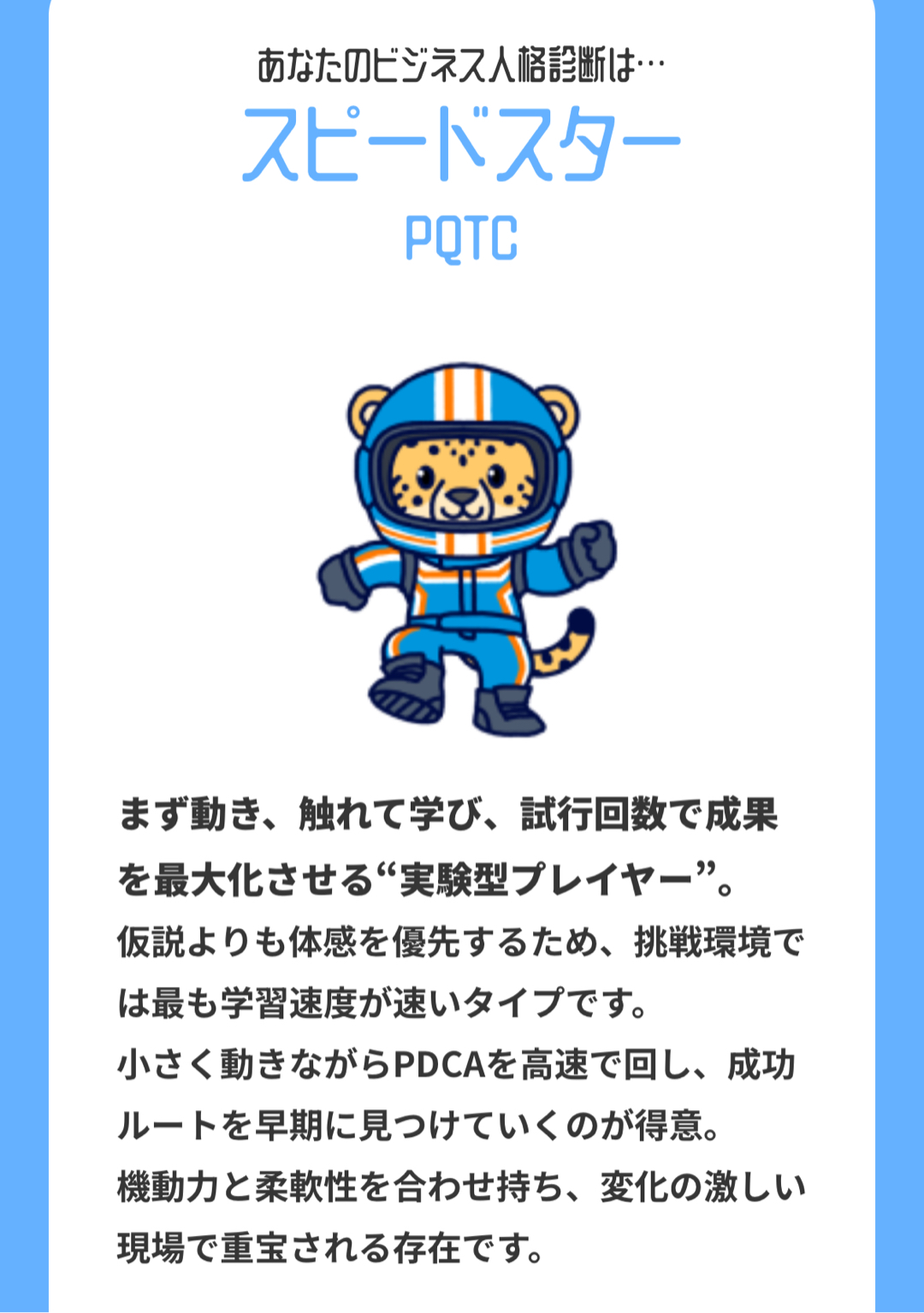 そしてそして、自己分析といえば1ヶ月くらい前に流行った『ビジネス人格診断』!