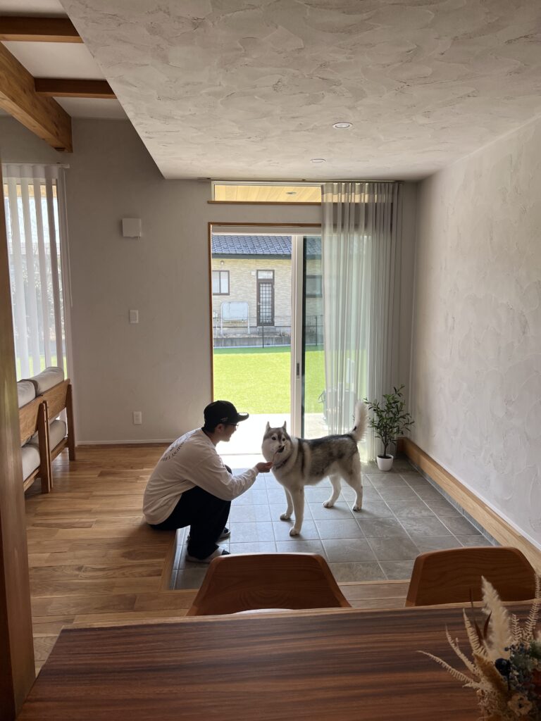 家づくりを計画当初から、ワンちゃんの為の土間スペースを設けたり、広いお庭にドッグランを作りたい!と仰っていたご家族で、