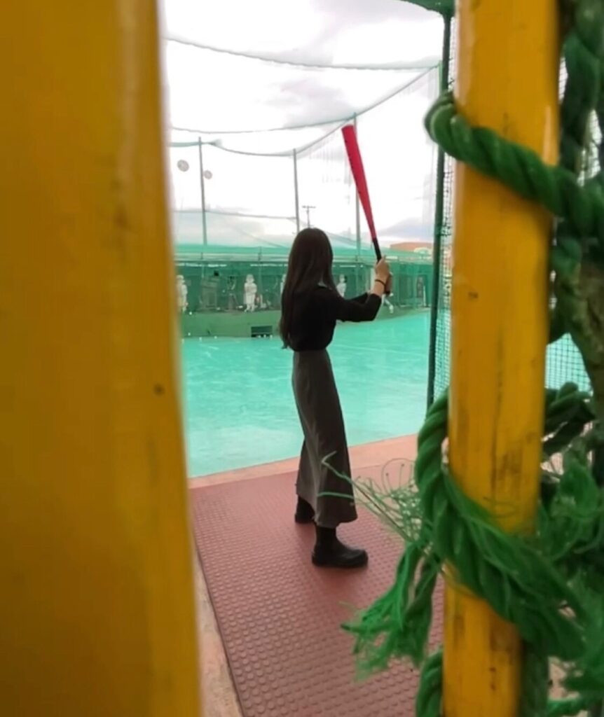 フォームはグダグダですが、学生時代にテニスをしていたおかげもあってか、ホームランを打つことができました!笑