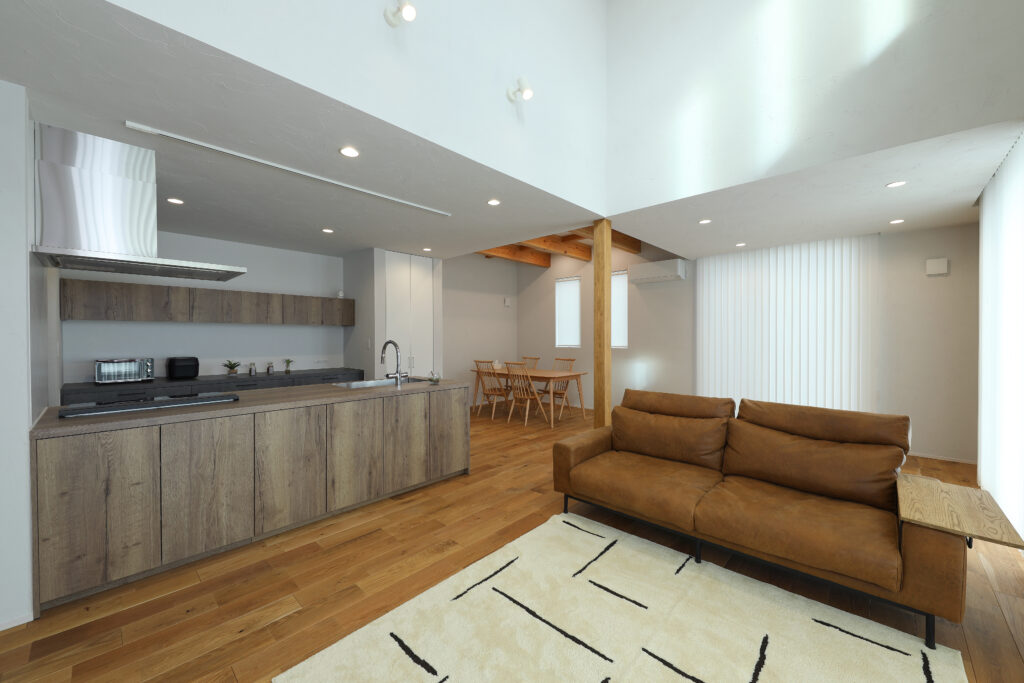 天井高を活かしたゆとりある設計により、存在感のある家具や大きな観葉植物、アートやポスターといったボリュームのあるインテリアも自然に調和します。