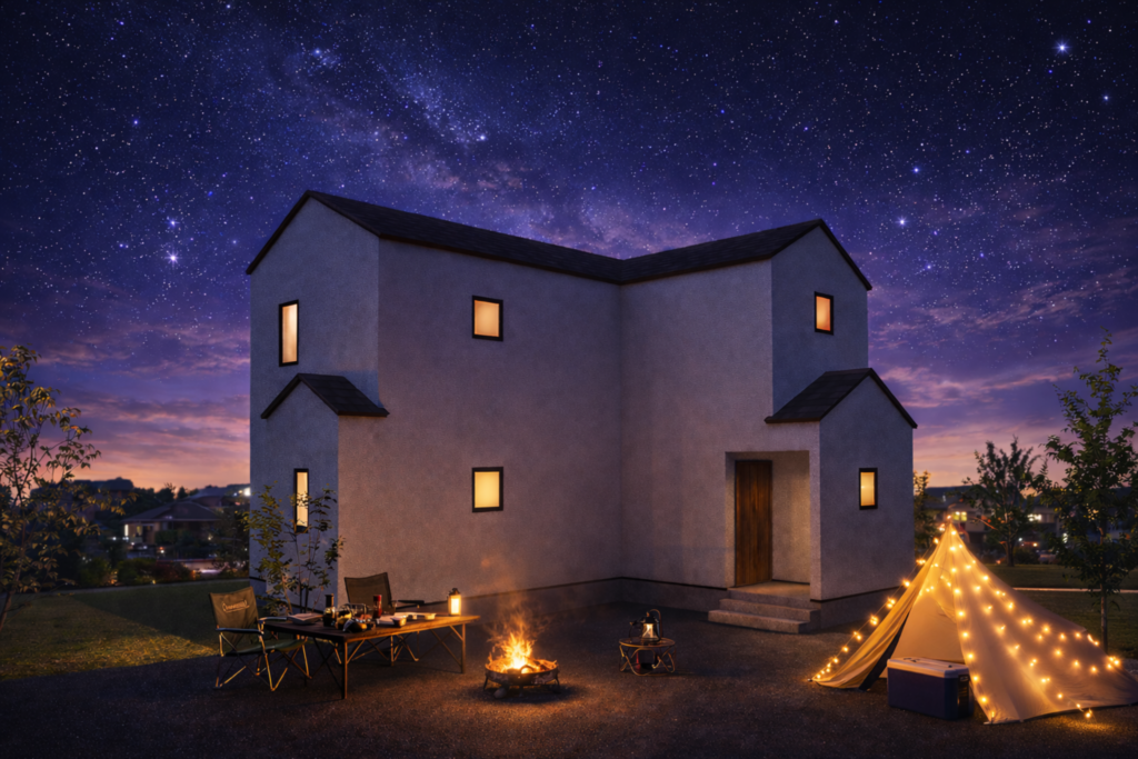 駐車場のすぐ隣にあるため、車への積み込みや荷下ろしもスムーズ。重たいキャンプ用品やクーラーボックスも、すぐ車に運べるので準備がぐっとラクになります。キャンプ道具や泥のついた靴も外で収納できるため、家の中を清潔に保ちやすいのも大きな魅力。釣りやゴルフなど早朝の出発時も、ご家族を起こすことなく静かに準備ができます。