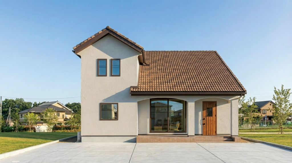 瓦屋根は、耐久性・耐火性に優れ、雨風や強い日差しから住まいを守ります。厚みのある瓦は断熱性が高く、夏は暑さを抑え、冬は冷気を防ぐため、室内温度が安定しやすいのが特長です。さらに遮音性にも優れ、静かな住環境を保ちます。塗り替えや葺き替えが半永久的に必要ないため、メンテナンス費用を抑えられる点も魅力です。年月とともに風格を増し、永く愛される住まいを形づくります。