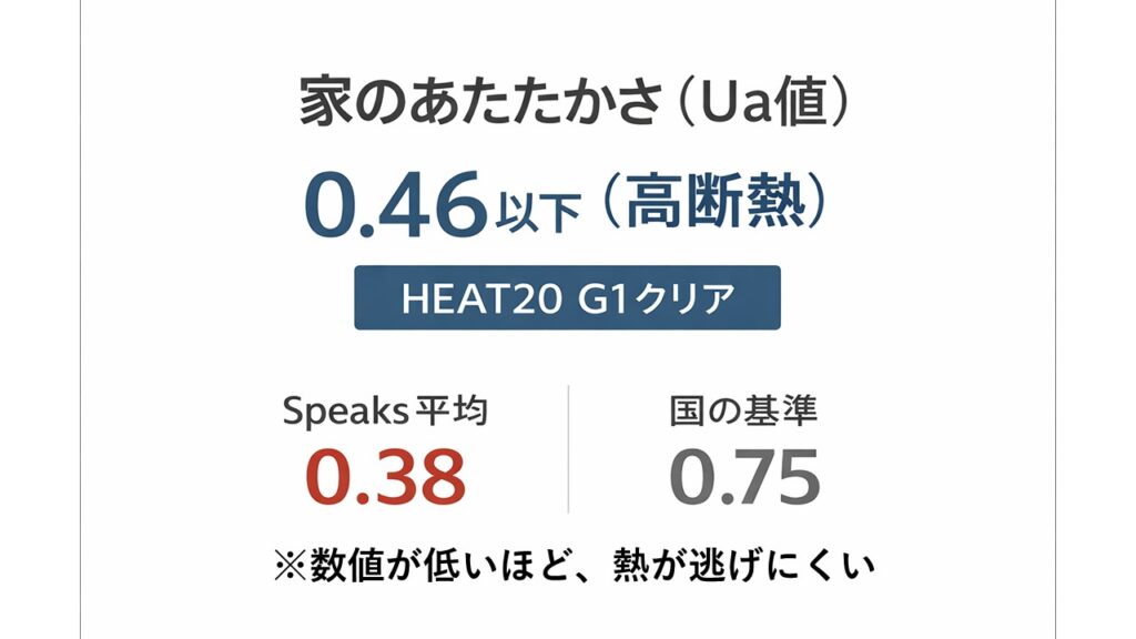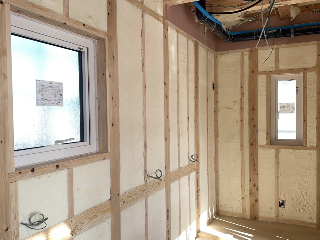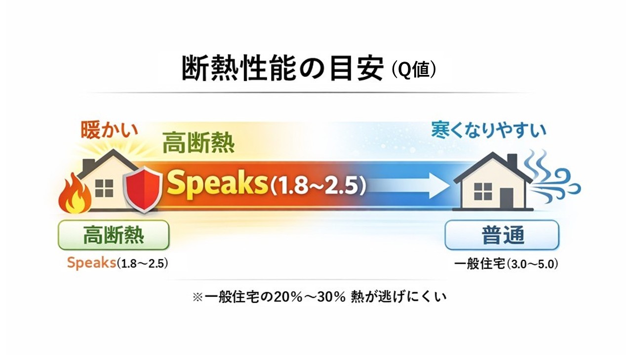 Speaksでは、空気の力で断熱する吹付け断熱材(フォームライトSL-100)を採用。外の暑さ・寒さをしっかり遮り、冷暖房が効きやすくなるので、光熱費を抑えながら快適に暮らせます。また、家をダウンジャケットのように包み込むことで、冬は暖かく、夏は涼しい室内環境をつくります。断熱・気密の仕上がりが良いと、冷暖房効率が上がり、毎月の電気代を減らしやすい家になります。