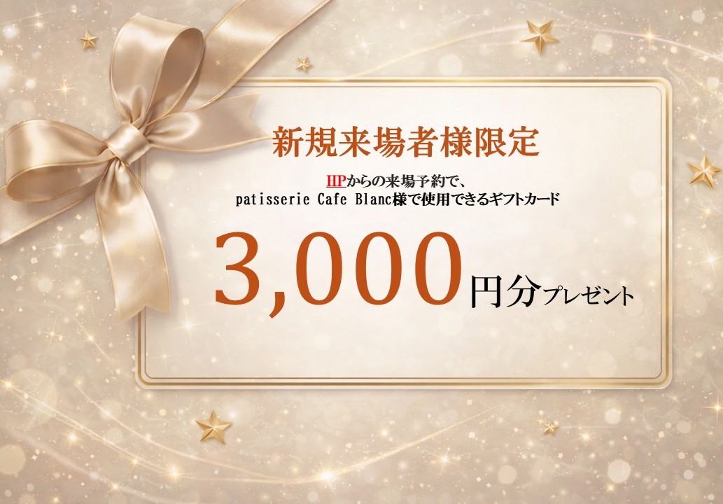 新規ご来場者様(要予約)に、3,000円分のギフトカードをプレゼント!